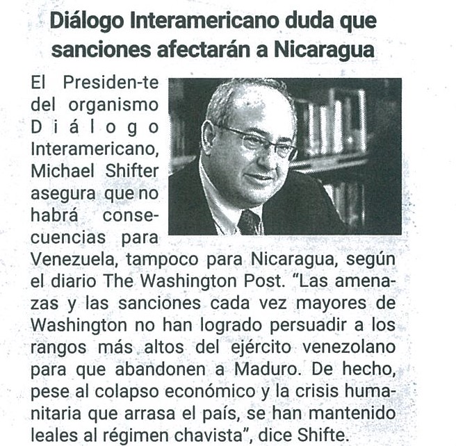 Diálogo Interamericano duda que sanciones afectarán a Nicaragua