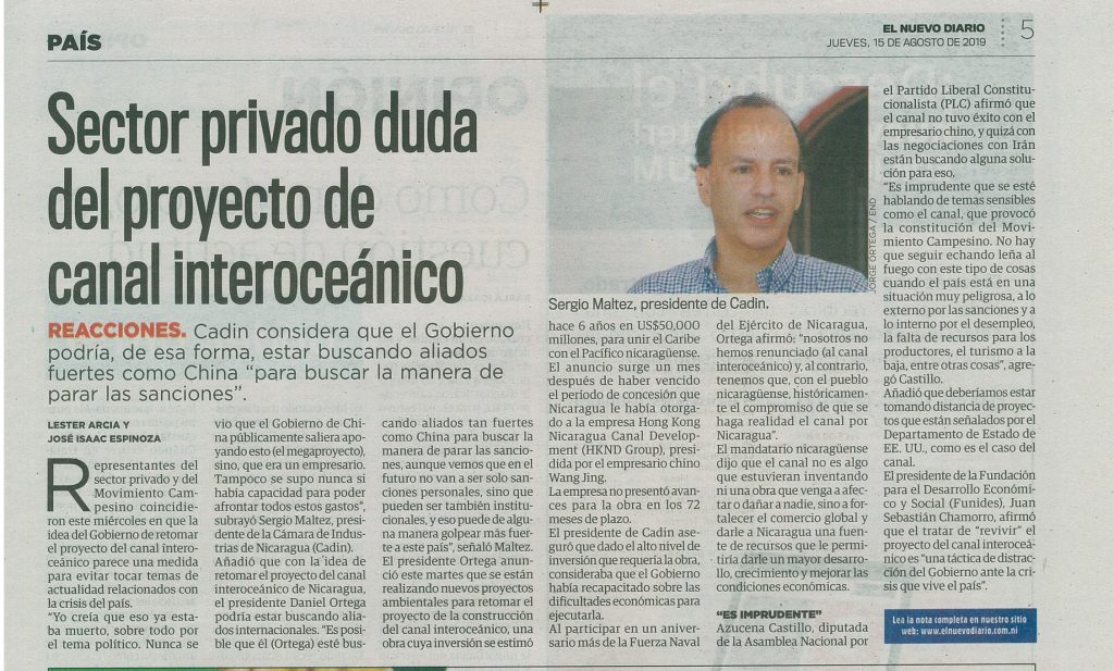 Sector privado duda del proyecto de canal interoceánico