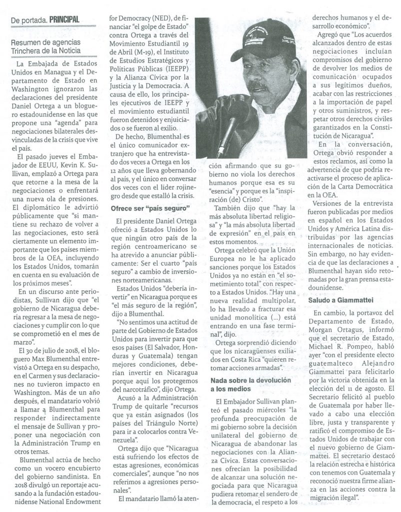 Trinchera de la Noticia, 20 de agosto 2019