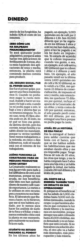 Afectados. La reforma de este martes les obliga a pagar al Estado un dólar por quintal vendido a más de US$100. Antes lo pagaban si vendían el quintal a US$140 o más.