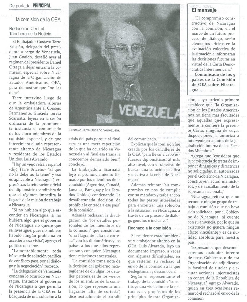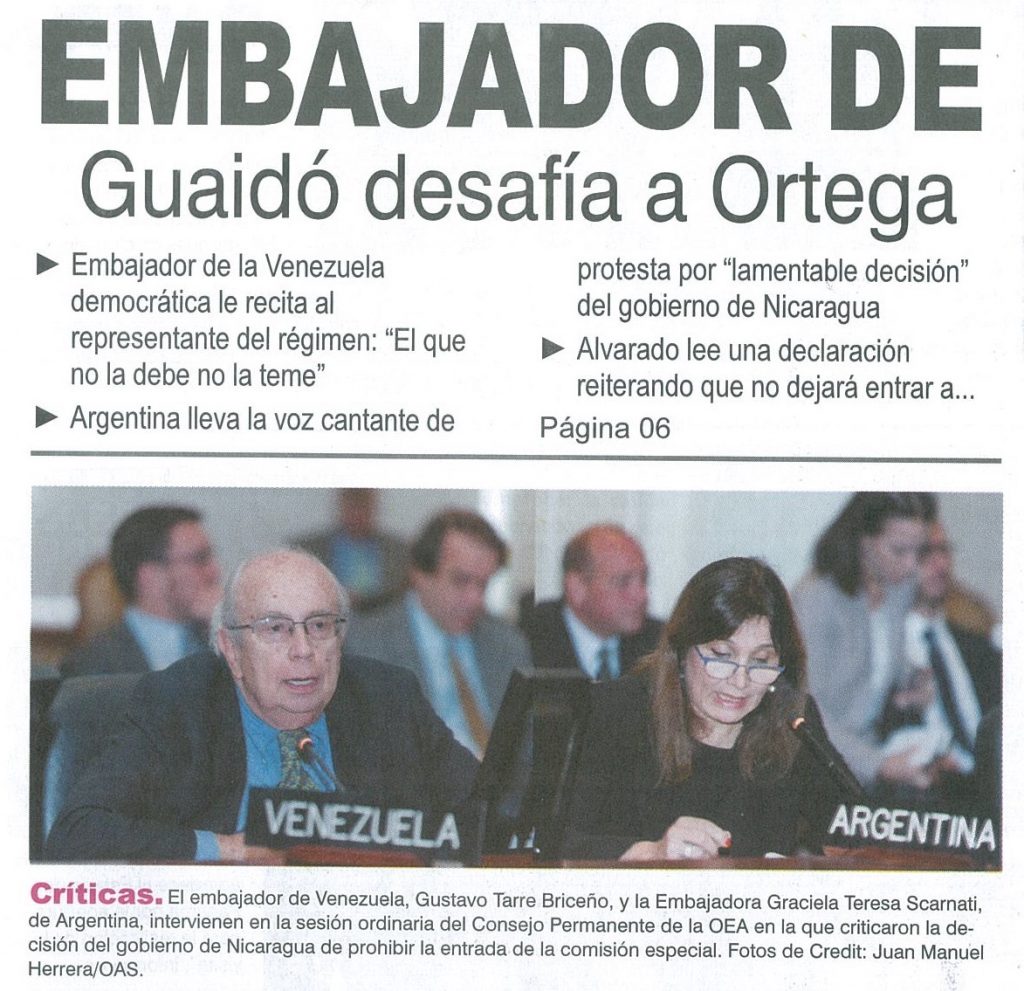Embajador de Guaidó desafía a Ortega
