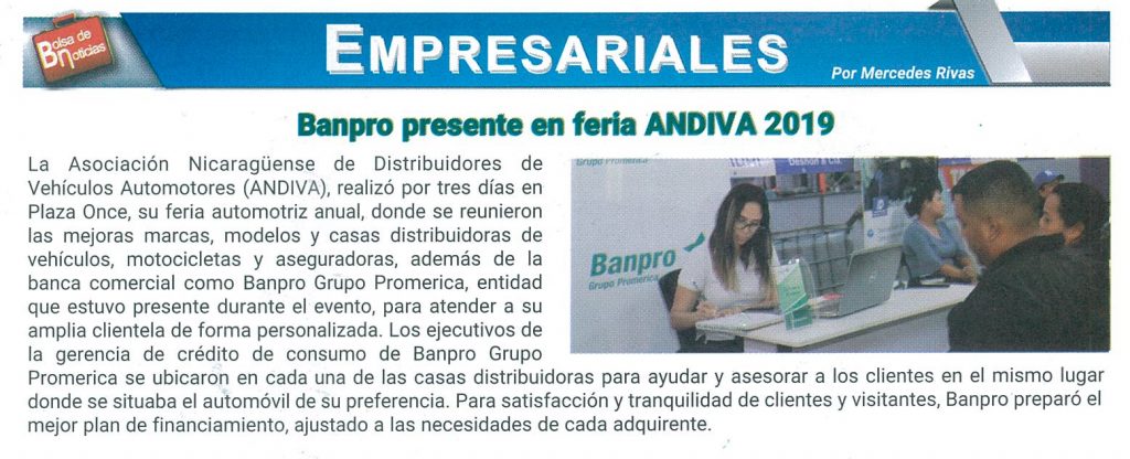 Banpro presente en feria ANDIVA 2019