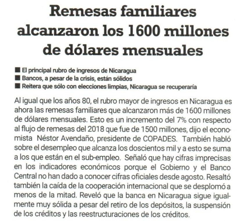 Remesas familiares alcanzaron los 1600 millones de dólares mensuales