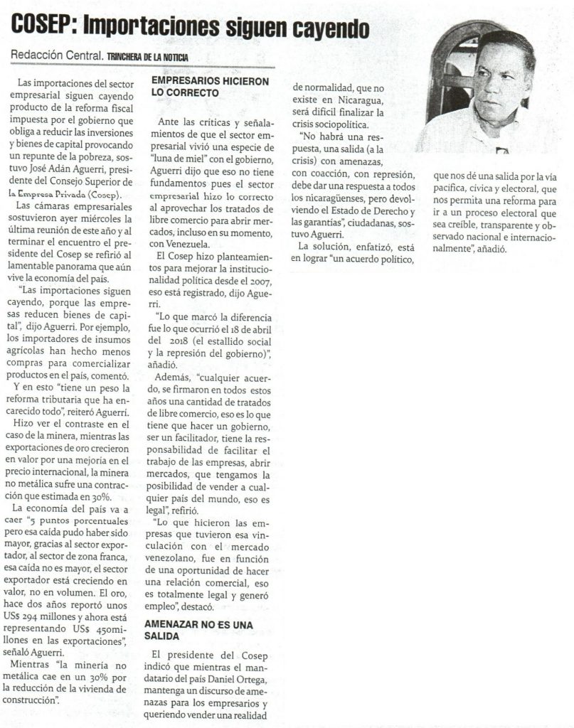 COSEP: Importaciones siguen cayendo