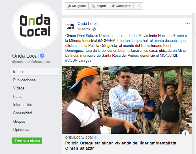 Olman Onel Salazar Umanzor, secretario del Movimiento Nacional Frente a la Minería Industrial (MONAFMI), ha tenido que huir al monte después que oficiales de la Policía Orteguista, al mando del Comisionado Fidel Domínguez, jefe de la policía en León, allanaron su casa, ubicada en Mina La India, municipio de Santa Rosa del Peñón, la tarde del miércoles 18 de diciembre de 2019, denunció el MONAFMI.