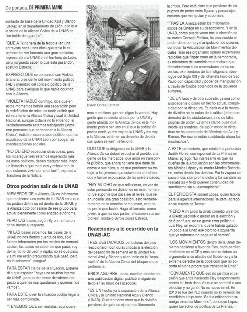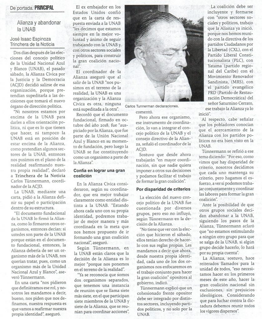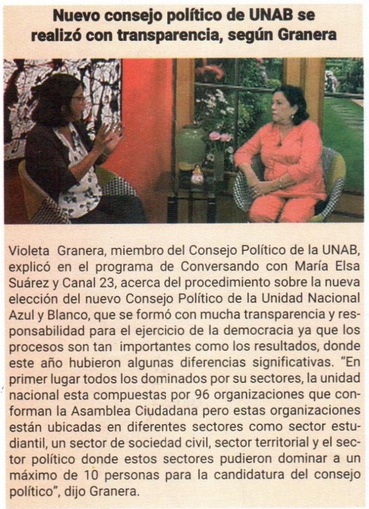 Nuevo consejo político de UNAB se realizó con transparencia, según Granera