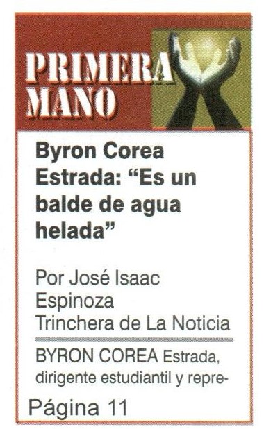 Byron Corea Estrada: «Es un balde de agua helada»