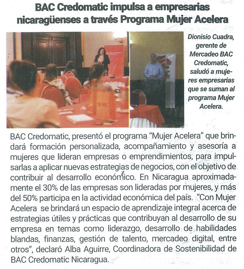 BAC Credomatic impulsa a empresarias nicaragüenses a través Programa Mujer Acelera