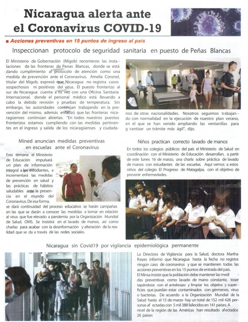 Nicaragua alerta ante el Coronavirus COVID-19