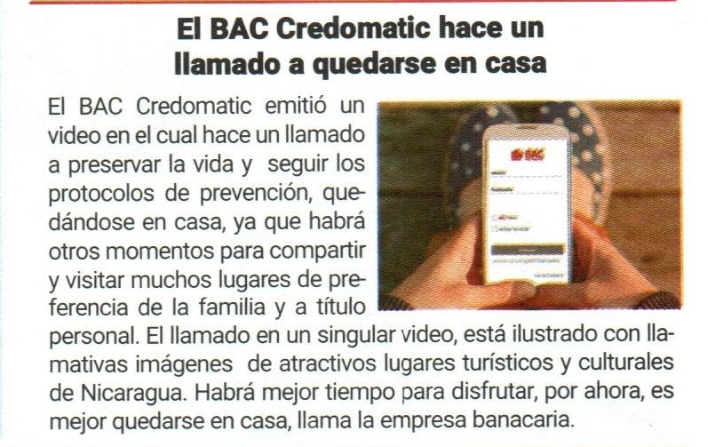 El BAC Credomatic hace un llamado a quedarse en casa