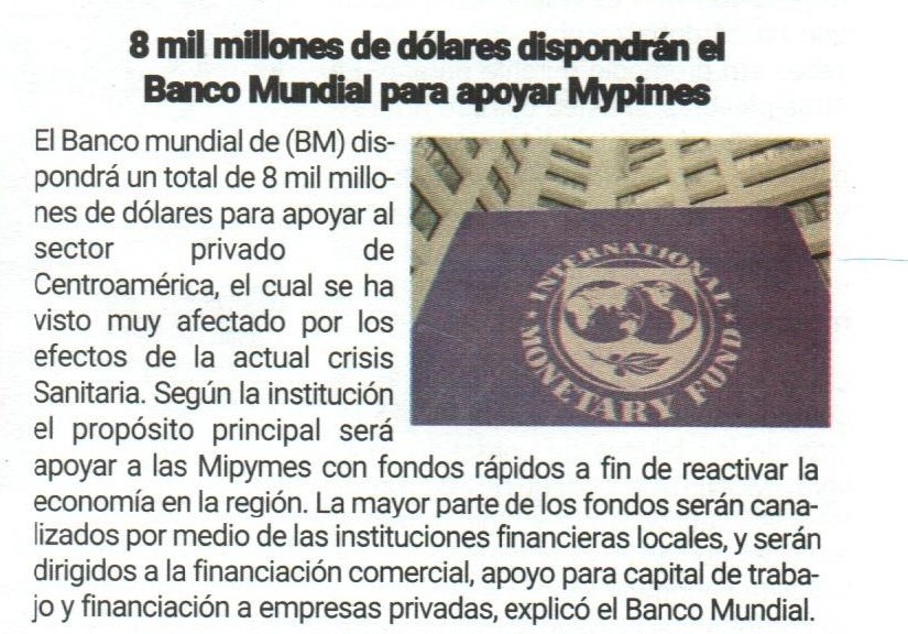 8 mil millones de dólares dispondrán el Banco Mundial para apoyar Mypimes