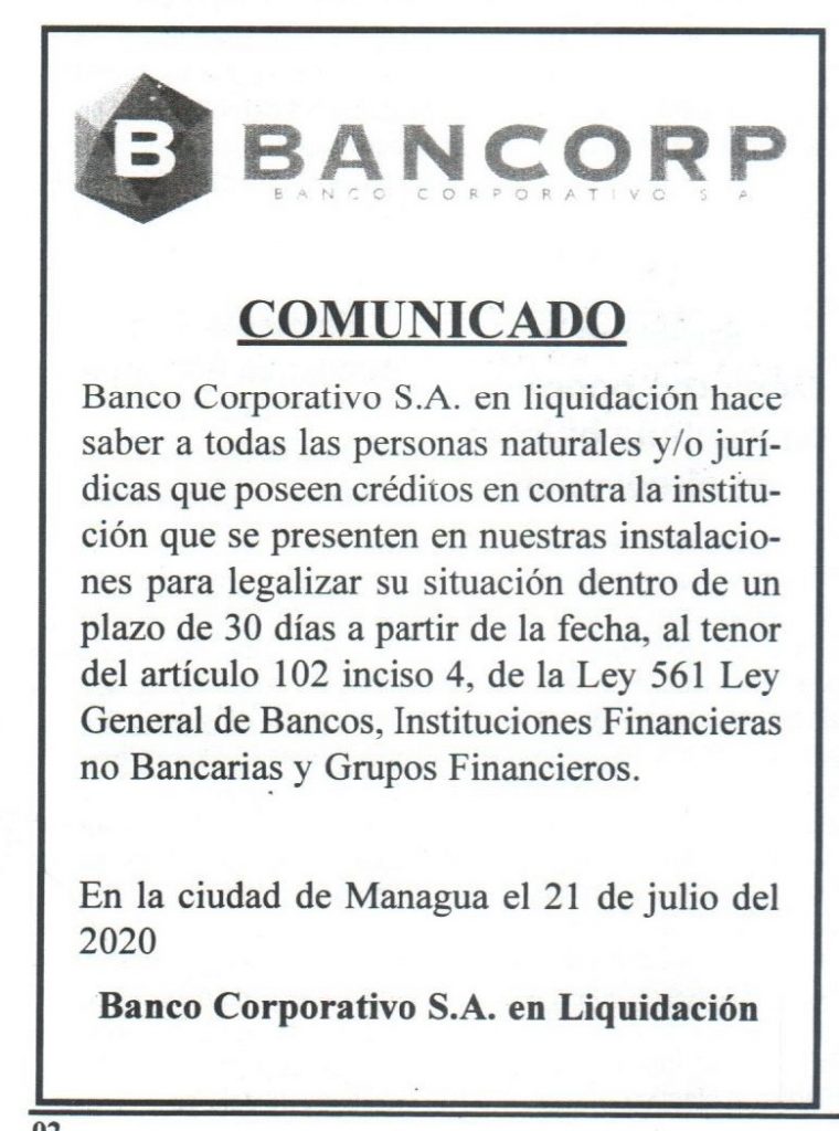 Comunicado BANCORP