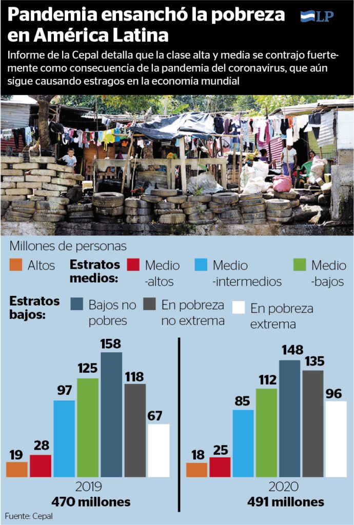 Pero además el informe de la Cepal indica que la crisis económica que ha generado el coronavirus ha contraído la clase media alta, intermedia y baja de la región.