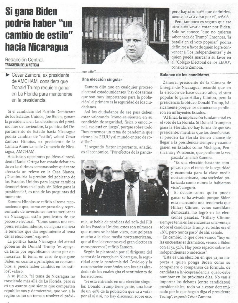 Si gana Biden podría haber un cambio de estilo hacia Nicaragua