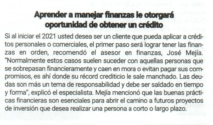 Aprender a manejar finanzas le otorgará oportunidad de obtener un crédito