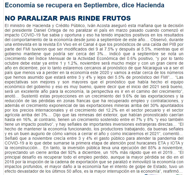 Economía se recupera en Septiembre, dice Hacienda. No paralizar país rinde frutos