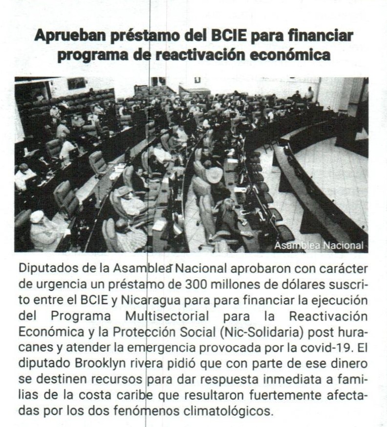 Aprueban préstamo del BCIE para financiar programa de reactivación económica