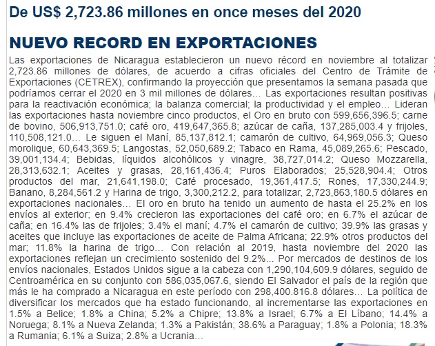 De U$2,723.86 millones en once meses del 202: Nuevo record en exportaciones
