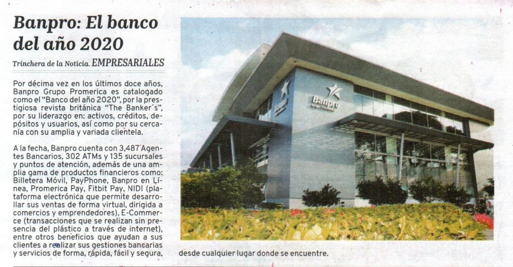 Banpro: El banco del año 2020