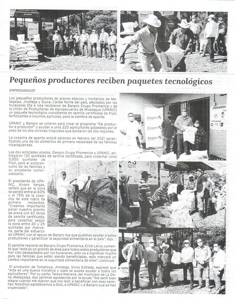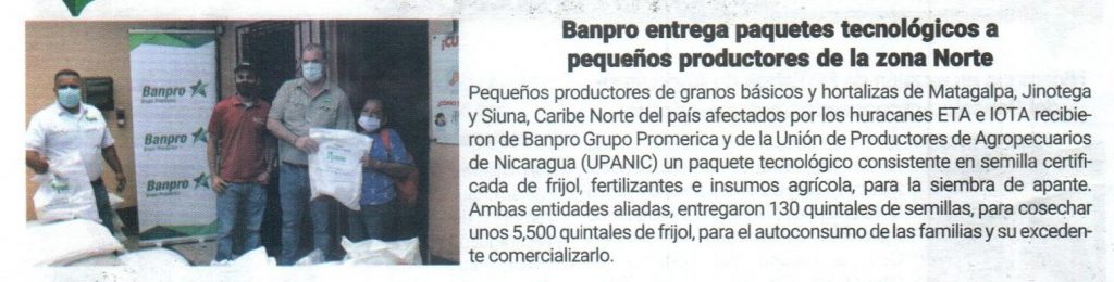 Banpro entrega paquetes tecnológicos a pequeños productores de la zona Norte