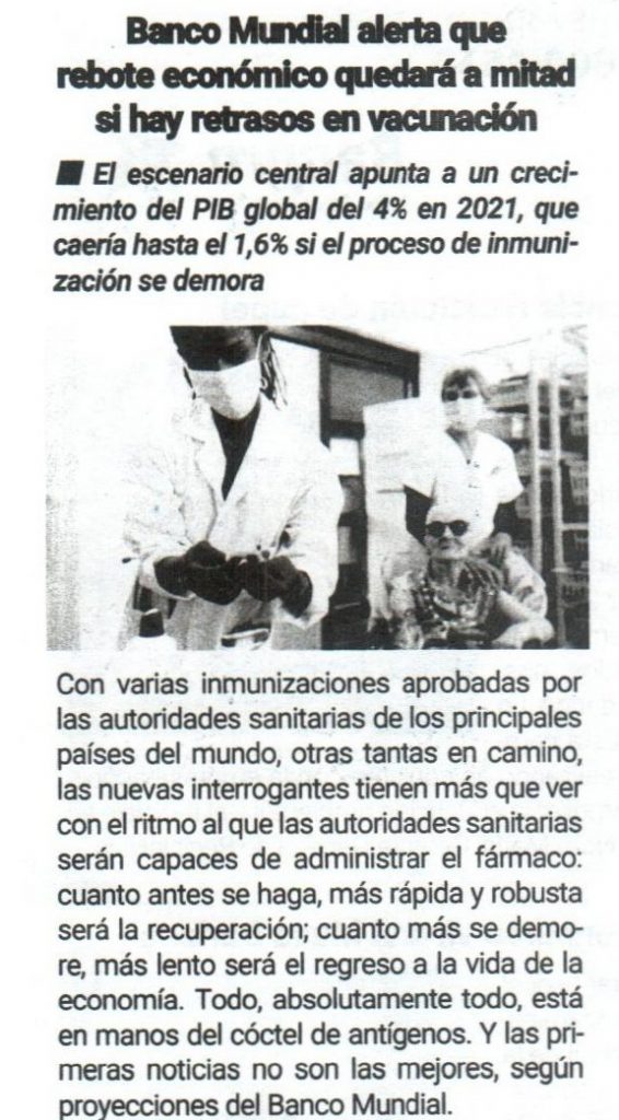 Banco mundial alerta que rebrote económico quedará a mitas si hay retrasos en vacunación