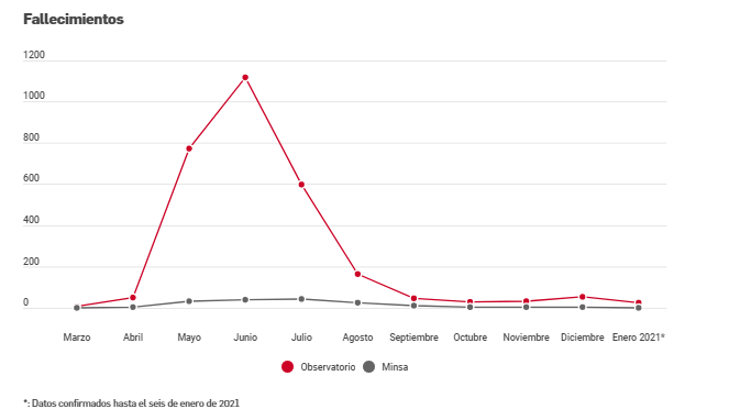 La disminución de casos también incluyó la reducción casi total en las muertes dentro del gremio de Salud. En septiembre solo hubo un fallecimiento y en octubre no hubo muertes. Sin embargo, desde noviembre al seis de enero, han fallecido al menos cuatro sanitarios. A esta cantidad, también se suma la muerte de dos médicos más esta semana, siendo un indicador de alerta.