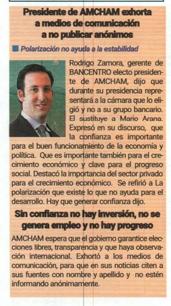 Presidente de AMCHAM exhorta a medios de comunicación a no publicar anónimos