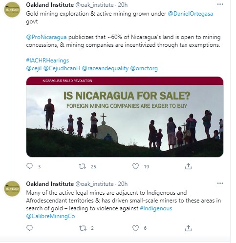 Twitter de: Oakland Institute y Race and Equality (19/03/2021)