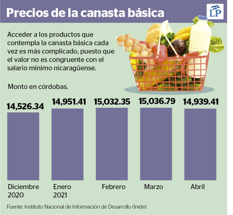 De hecho, a diciembre de 2020 la cesta familiar se ubicaba en 14,526.43 córdobas; en los primeros cuatro meses de este año ha subido 413.07 córdobas.