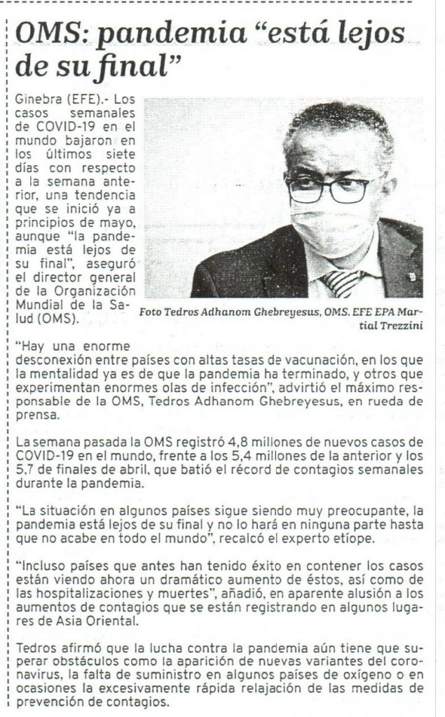 OMS: pandemia «está lejos de su final»