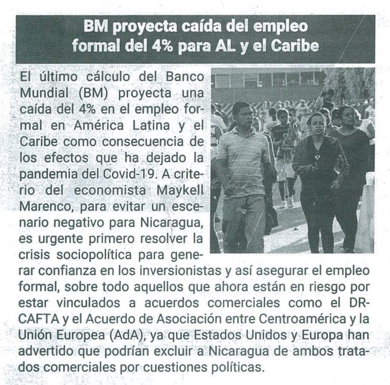 BM proyecta caída del empleo formal del 4% para AL y el Caribe