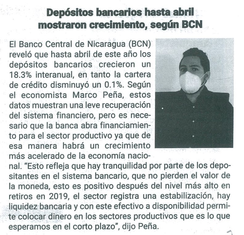 Depósitos bancarios hasta abril mostraron crecimiento según BCN