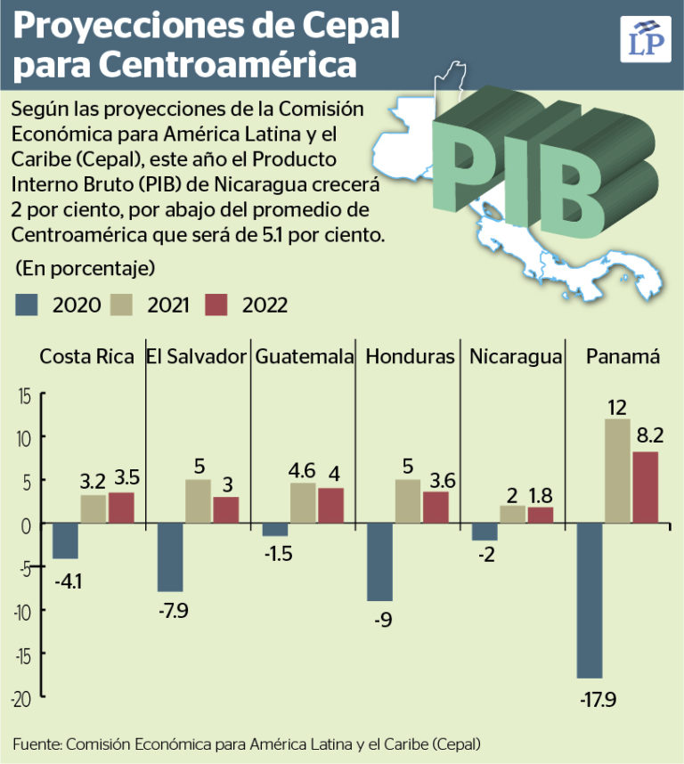De esta manera, la Cepal se convierte en el primer organismo internacional que mejora el panorama económico de Nicaragua para este año. Los pronósticos del Fondo Monetario Internacional (FMI) indican que en 2021 el PIB de Nicaragua podría crecer 0.2 por ciento, por su parte el Banco Mundial (BM) estimó un 0.9 por ciento. En tanto, The Economist Intelligence Unit (EIU) prevé un alza de 3.3 por ciento.