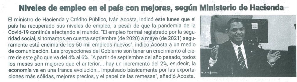 Niveles de empleo en el país con mejoras, según Ministerio de Hacienda