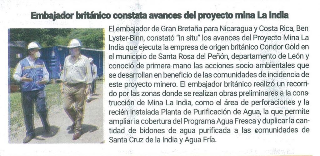 Embajador británico constata avances del proyecto mina La India