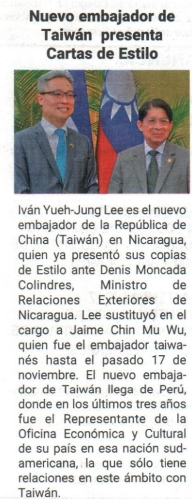 Nuevo embajador de Taiwán presenta Cartas de Estilo