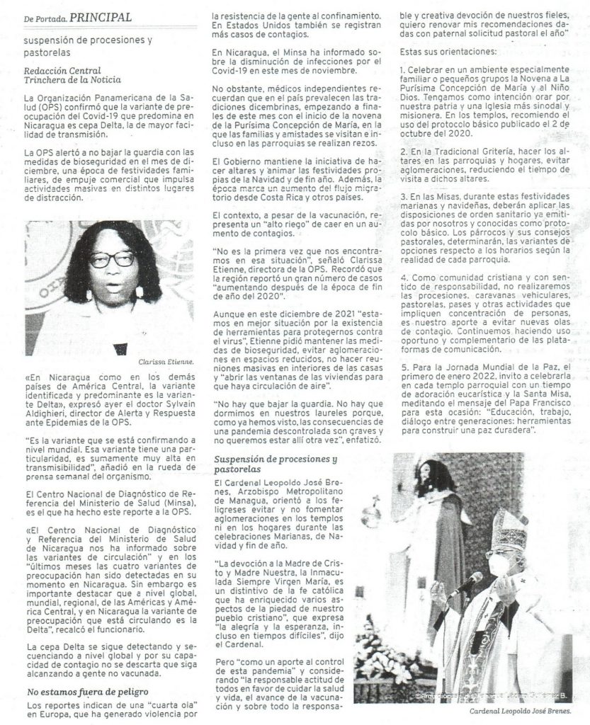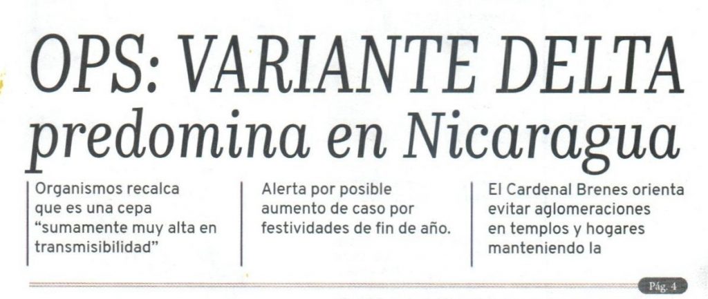 OPS: Variante Delta predomina en Nicaragua
