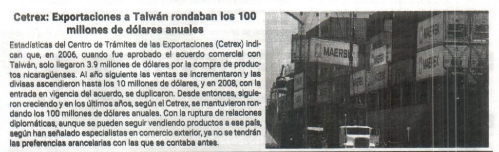 Centrex: Exportaciones a Taiwán rondan los 100 millones de dólares anuales