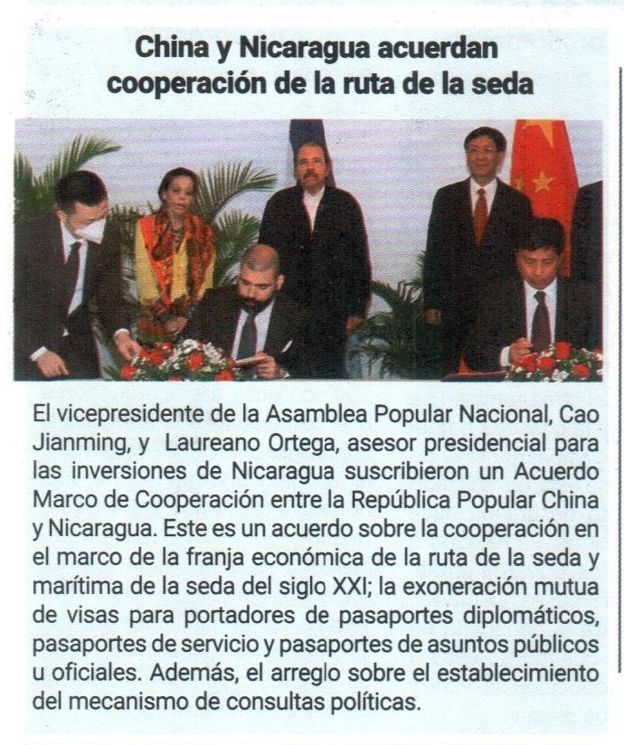China y Nicaragua acurdan cooperación de la ruta de la seda