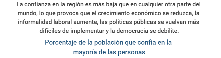 La confianza en la región es más baja que en cualquier otra parte del mundo, lo que provoca que el crecimiento económico se reduzca, la informalidad laboral aumente, las políticas públicas se vuelvan más difíciles de implementar y la democracia se debilite.
