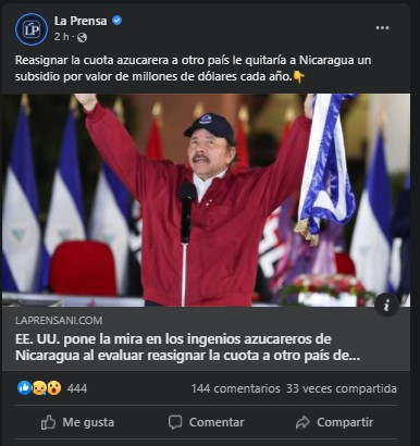Reasignar la cuota azucarera del país le quitaría a Nicaragua un subsidio por valor de millones de dólares cada año. «Elegir el azúcar podría ser una forma de movilizar a Carlos Pellas, el hombre más rico de Nicaragua y dueño de la mayor productora de azúcar», dijo AP.