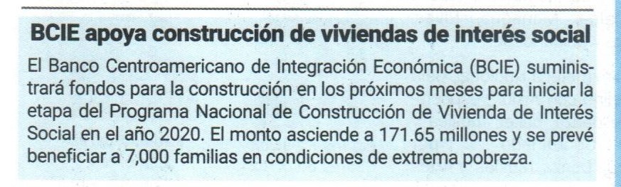 BCIE apoya construcción de viviendas de interés social