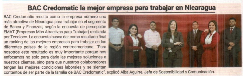 BAC Credomatic la mejor empresa para trabajar en Nicaragua