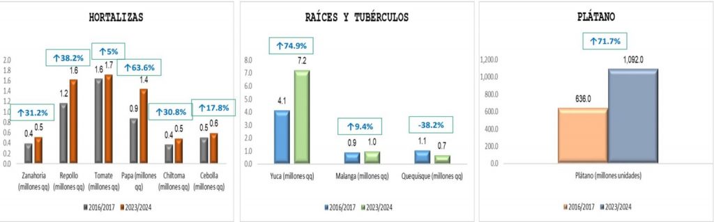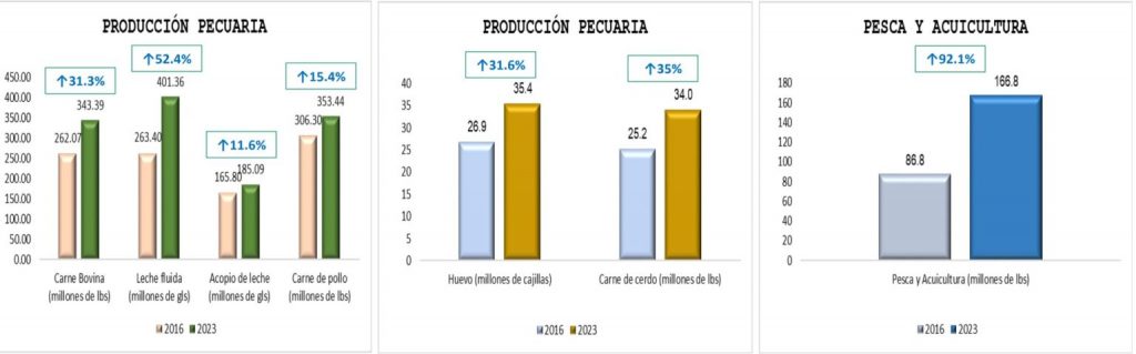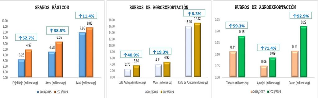 Pese a ello, el Gobierno en el plan de producción asegura que “entre 2006-2022, el sector Agropecuario ha incrementado su producción en 103.7 por ciento (sector agrícola 125.9 por ciento y sector pecuario 81.6 por ciento), influenciado por los programas socioproductivos implementados desde las instituciones del SNPCC (Sistema Nacional de Producción, Consumo y Comercio), las que continuarán estando presentes en todo el territorio nacional, acompañando y asistiendo a las familias productoras y emprendedoras del país”.