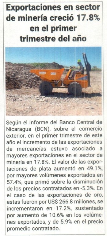 Exportaciones en sector de minería crecieron 17.8% en el primer trimestre del año