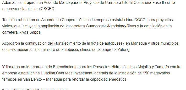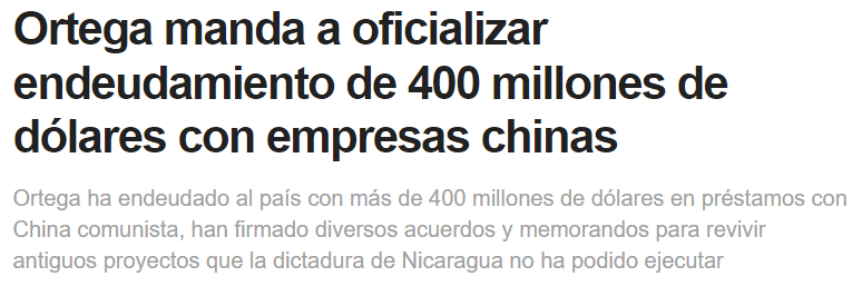 Ortega manda a oficializar endeudamiento de 400 millones de dólates con empresas chinas