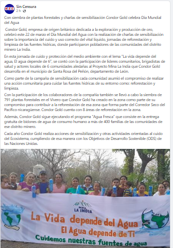 Con siembra de plantas forestales y charlas de sensibilización Condor Gold celebra Día Mundial del Agua.