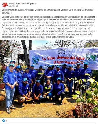 Con siembra de plantas forestales y charlas de sensibilización Condor Gold celebra Día Mundial del Agua.