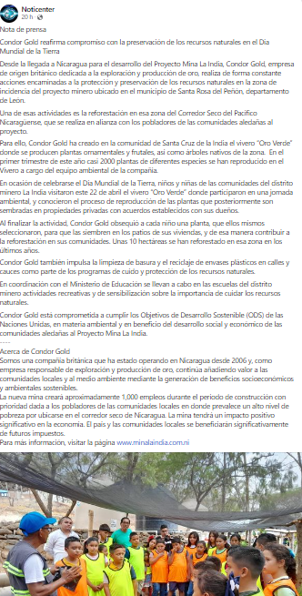 Condor Gold reafirma compromiso con la preservación de los recursos naturales en el Día Mundial de la Tierra