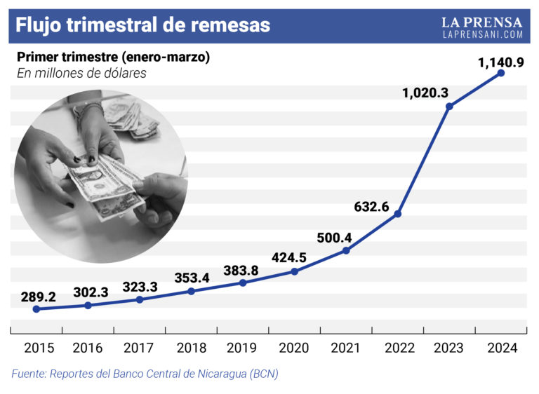 Desde que comenzó el 2024 el flujo de remesas que envían los migrantes nicaragüenses a sus familiares, está creciendo en menor proporción que el año pasado. Sin embargo, en los primeros tres meses del año llegaron al país 1,140.9 millones de dólares por este concepto. El monto es superior en 120.6 millones, que equivalen al 11.8 por ciento, en comparación con los 1,020.3 millones recibidos en el primer trimestre de 2023. Con este flujo, Nicaragua se mantuvo como el país de la región con el mayor crecimiento de las remesas.